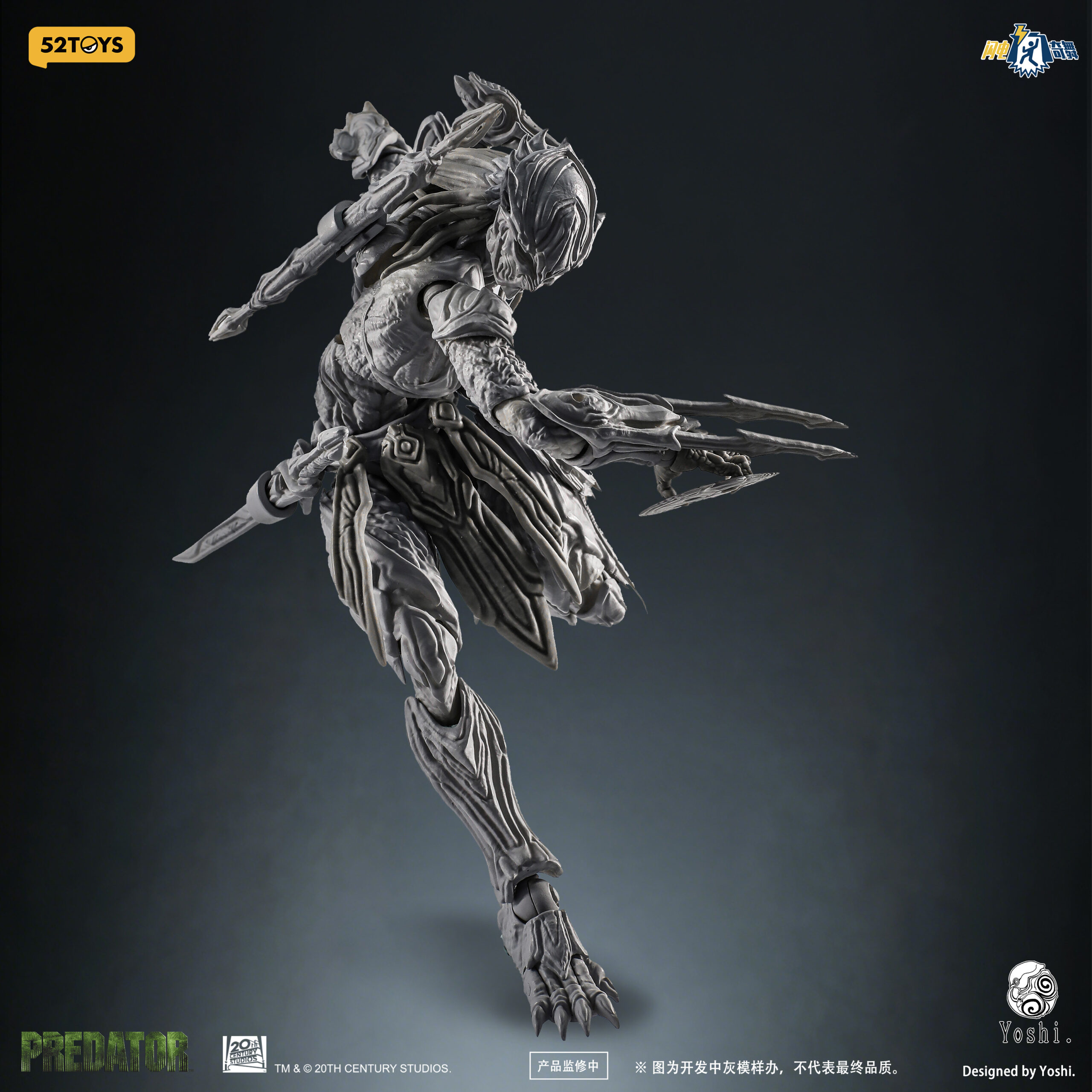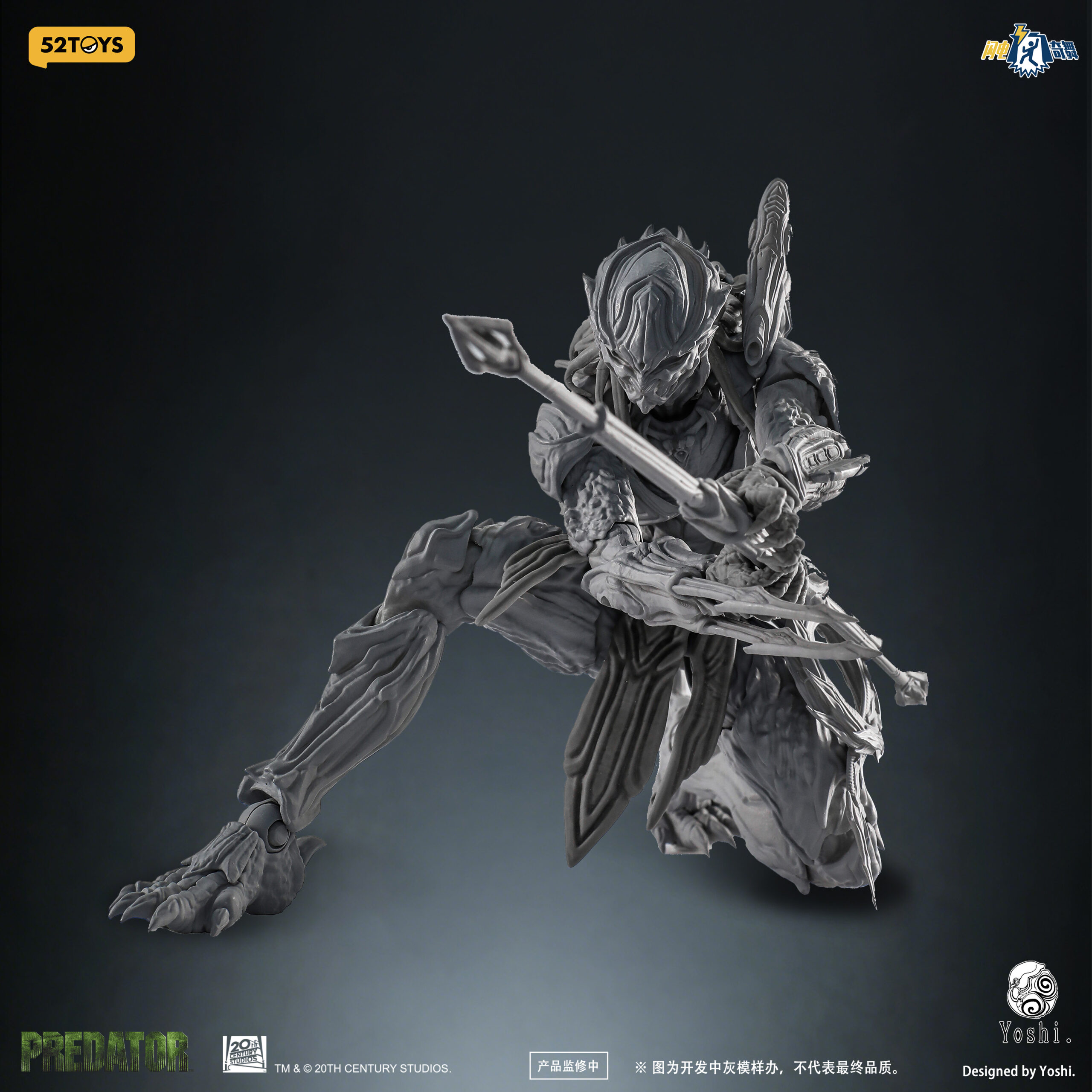 La 52Toys x Yoshi Predator est une figurine d’action très articulée à l’échelle 1/12, conçue par le sculpteur renommé Yoshi (Yoshi6054) pour 52Toys, prévue pour fin 2025 ou début 2026. Connue pour une série « Danse de la Foudre », cette figure réinvente la créature Yautja avec des touches artistiques organiques de style botanique distinctes des versions cinématographiques classiques