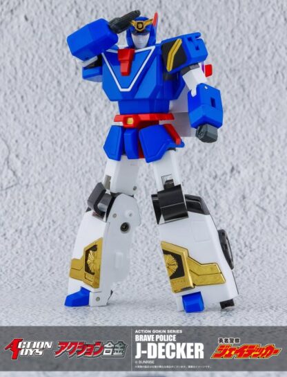 De la série Brave Police J-Decker vient la figurine articulée Action Gokin J-Decker d’Action Toys ! Cette figurine mesure environ 8,27 pouces de haut et est très articulée pour créer une variété de poses populaires. Le courageux détective Deckerd se transforme complètement en mode voiture de patrouille, et Deckerd et J-Loader se combinent et se transforment complètement en le robot géant J-Decker ! N’oubliez pas de l’ajouter à votre collection !