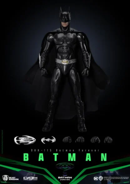 Le dernier ajout de Beast Kingdom à la série DAH (Dynamic 8ction Heroes) très détaillée et articulée, le DAH-115 Batman 1995, est un incontournable pour les fans. Cette figurine recrée parfaitement la combinaison sonar et l’expression boudeuse caractéristique de Val Kilmer dans les scènes culminantes du film. Doté de plus de 22 points d’articulation et d’une cape en tissu de haute qualité, Batman peut être posé dans une variété de positions dynamiques. L’ensemble comprend également le pistolet à grappin sous-marin de Batman et des batarangs en forme de chauve-souris, offrant une représentation fidèle du classique Batman de 1995.