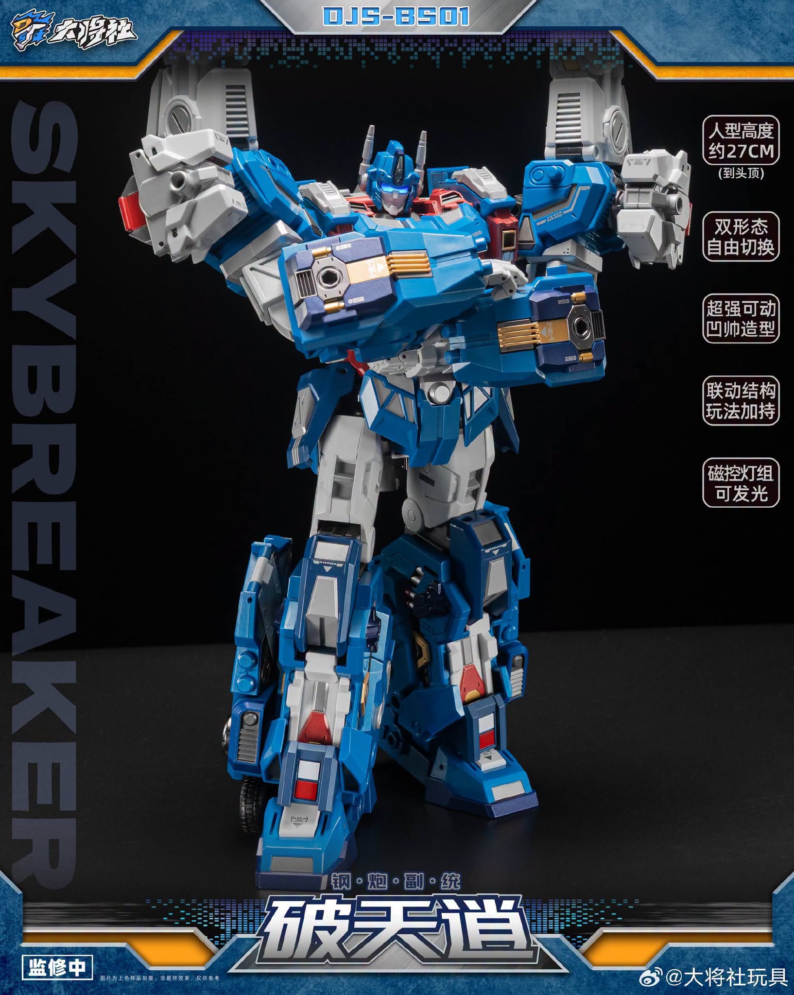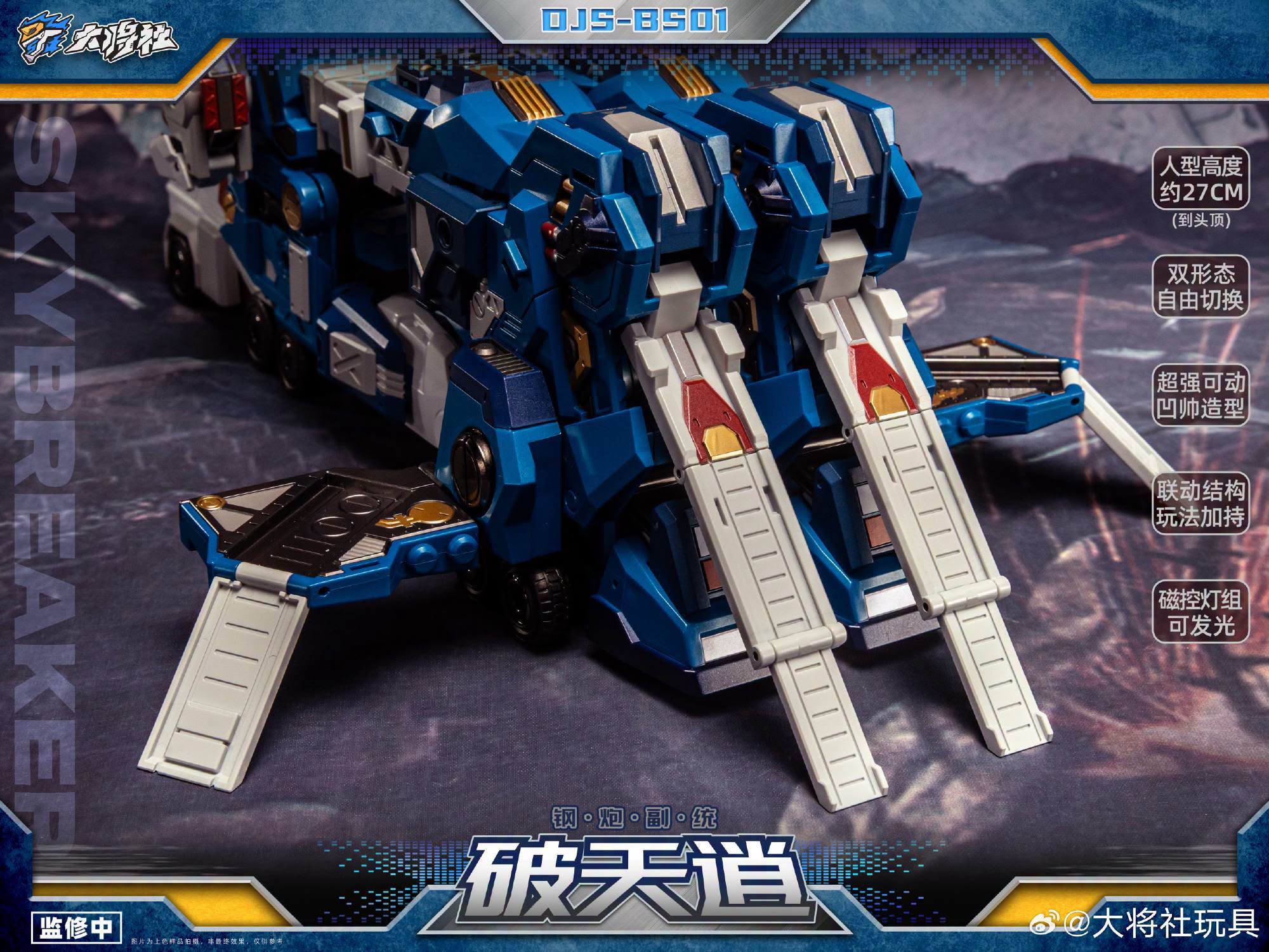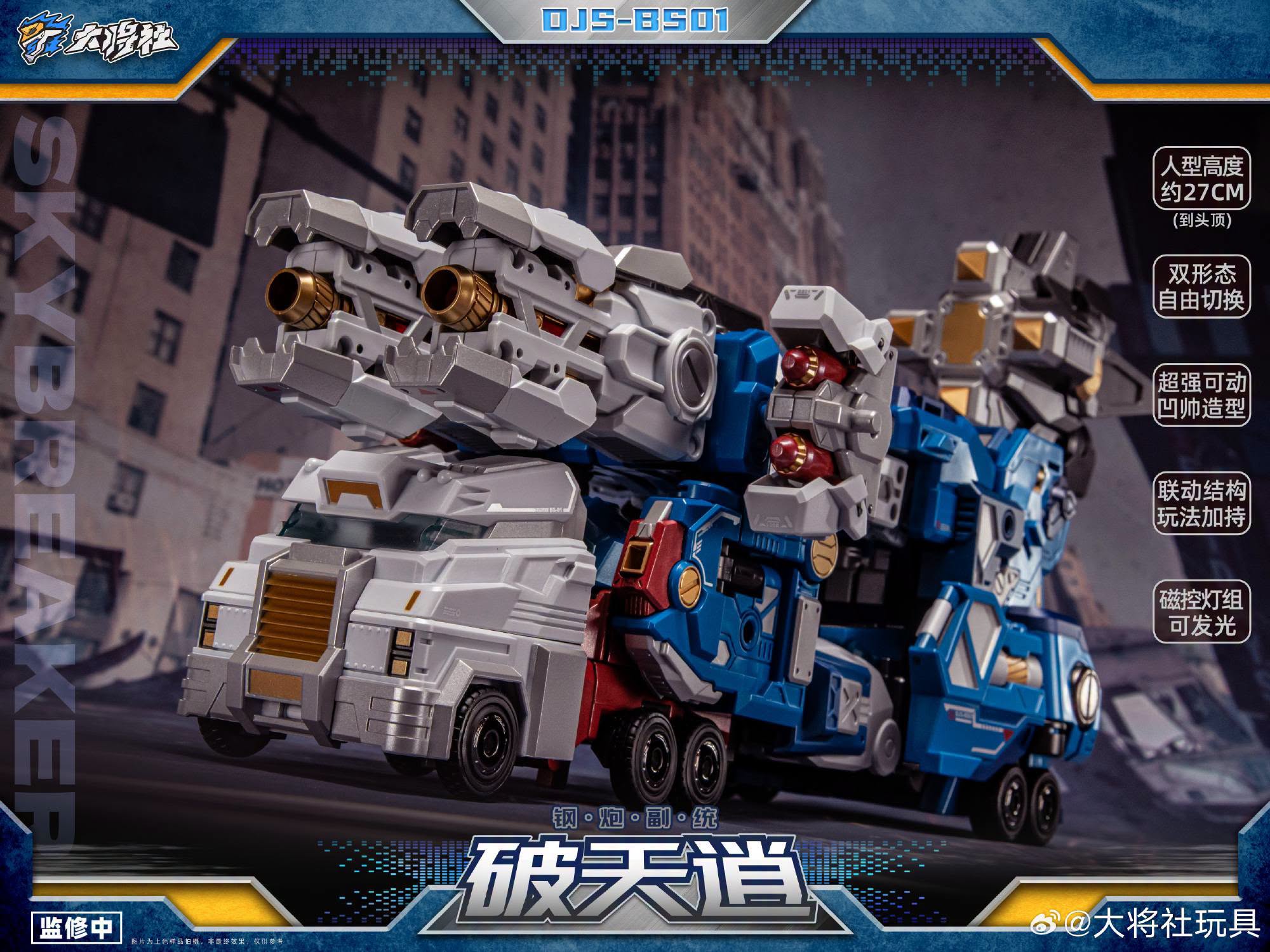 Le DJS-BS01 Skybreaker mesure un peu moins de 11 pouces de haut et se transforme de City Commander en figurine robotique articulée et très détaillée.