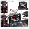 Le Diaclone TM-33 Tactical Mover Fort Panzer présente le haut niveau de détail habituel que vous attendez d’un produit Takara Tomy Diaclone. Le Tactical Mover se divise en une baie de réparation mobile avec des ports pour des ajouts supplémentaires (vendus séparément) Le cockpit dispose de plusieurs niveaux de sièges, y compris une baie de visualisation inversée.