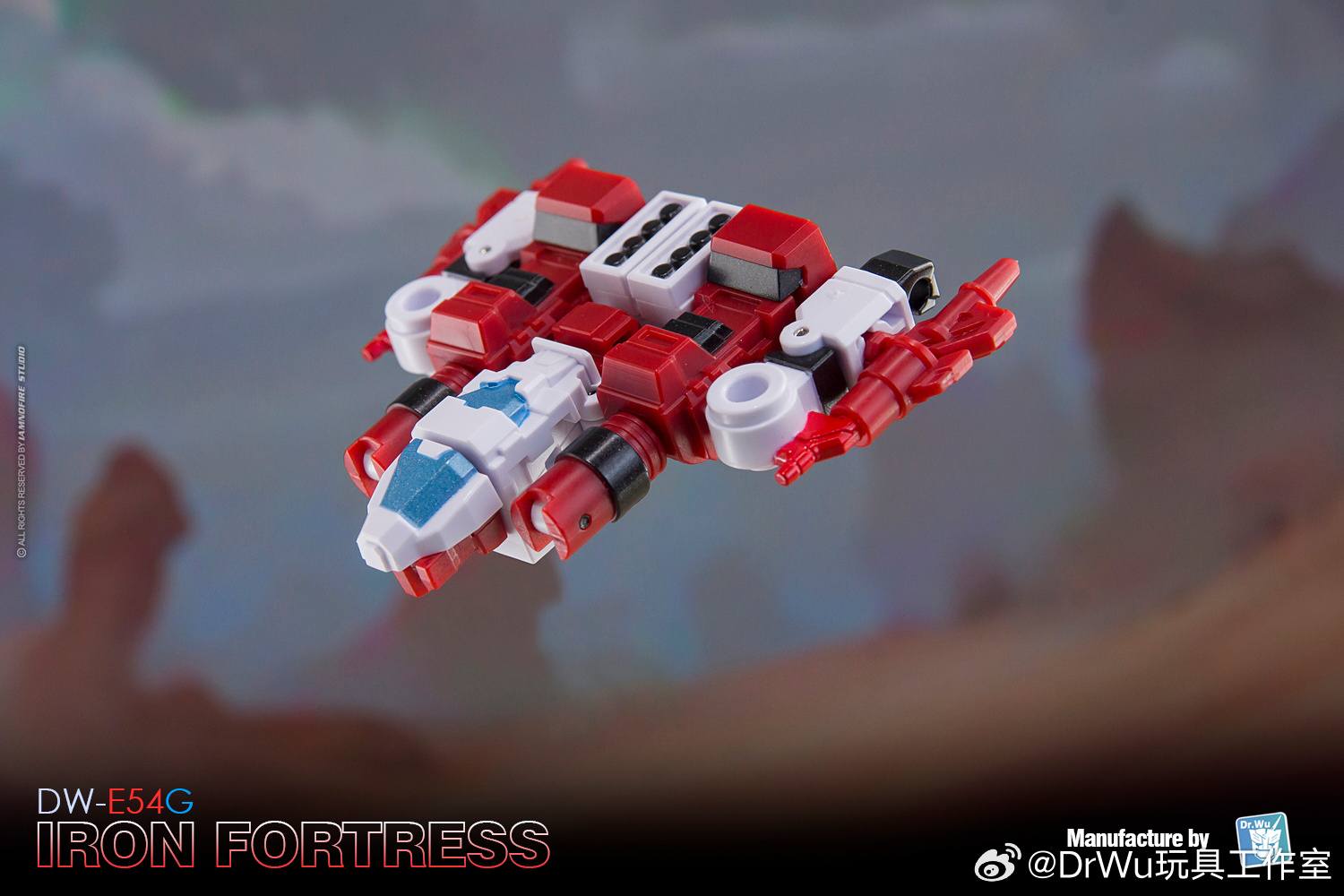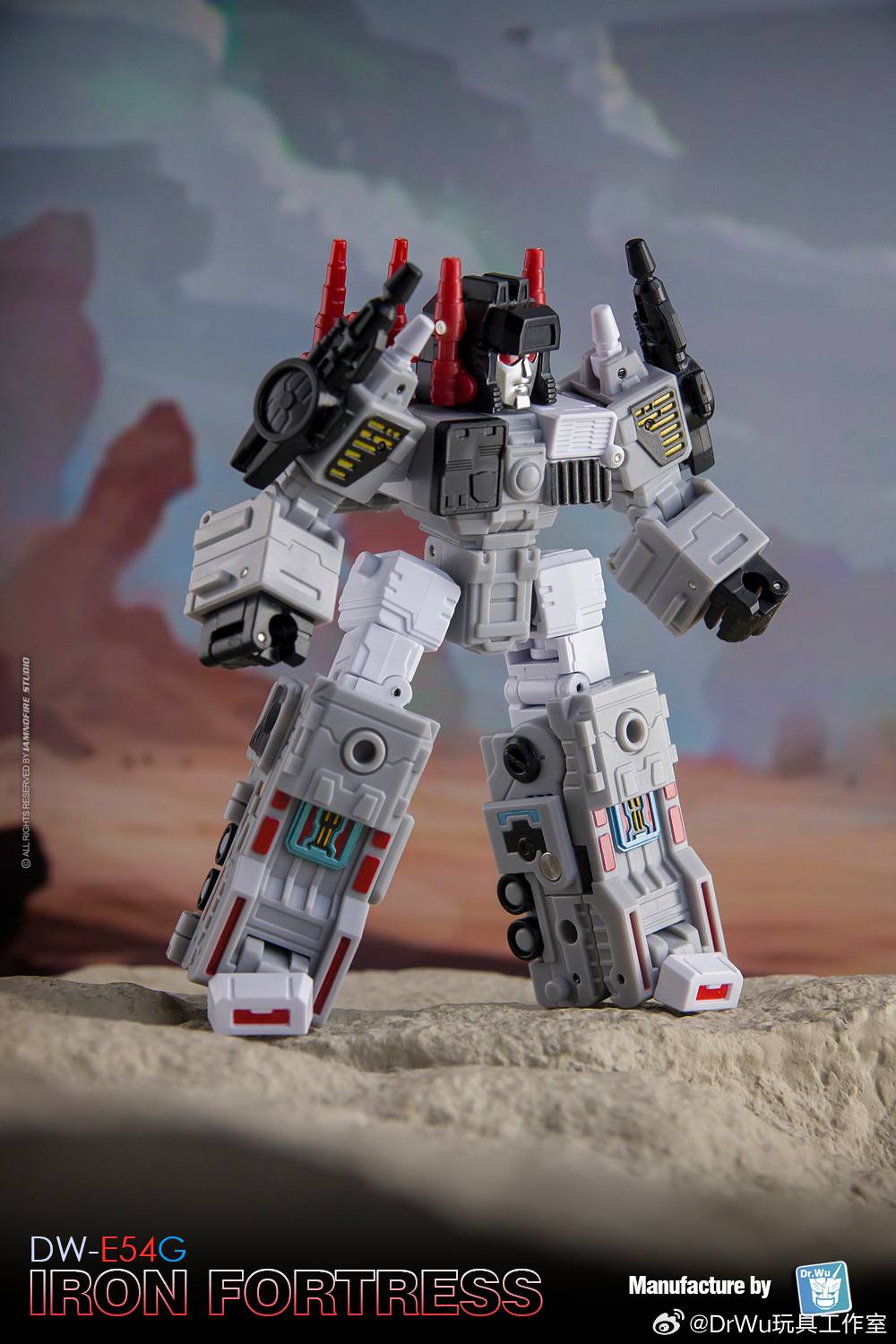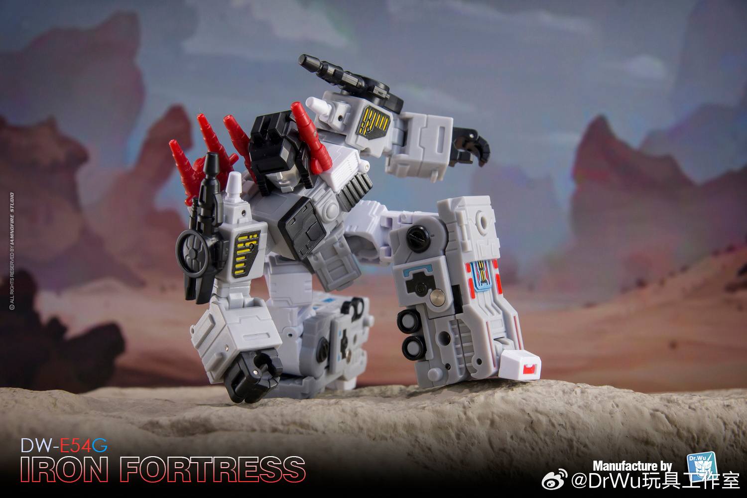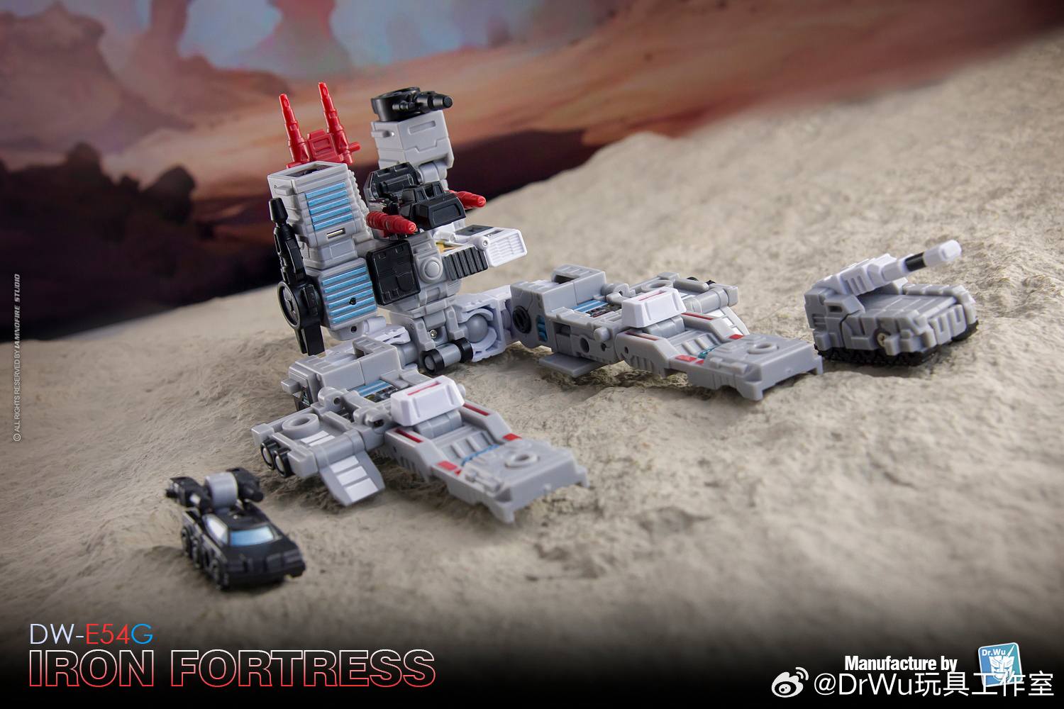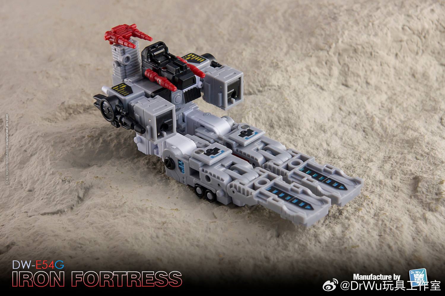 Le DW-E54G de l’Iron Fortress se transforme d’une station de combat mobile à une base robotique, puis à une figurine d’action et de nouveau à nouveau. Iron Fortress est équipé de robots sbires capables de peupler le mode base.