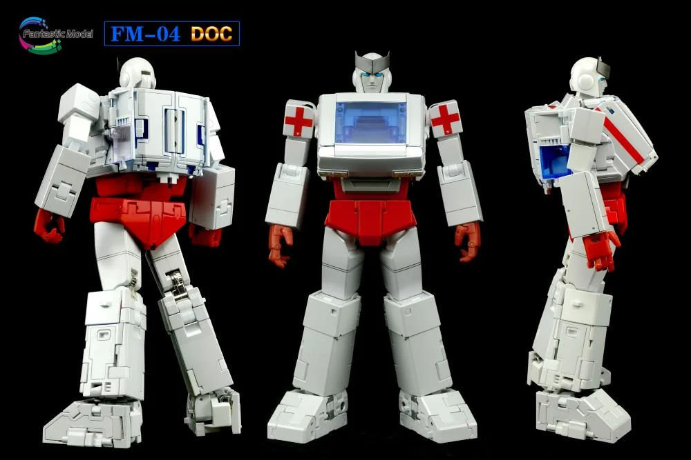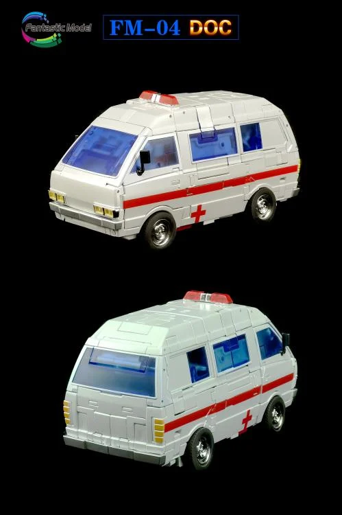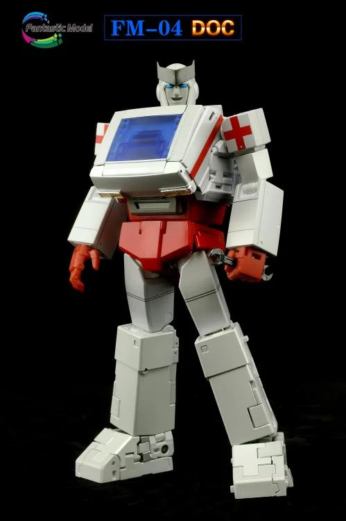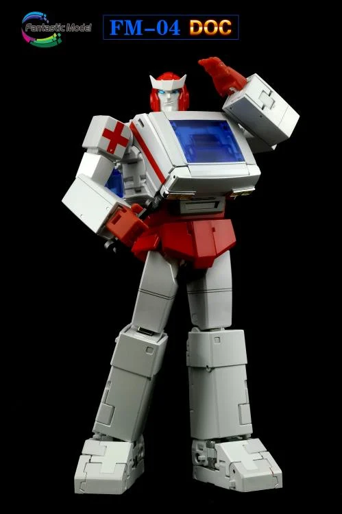 Fantastic Model Doc passe d’ambulance à une figurine robotique entièrement articulée, puis inversement. Doc mesure environ 9 pouces de haut en mode robot et est construit en plastique et en métal moulé.
