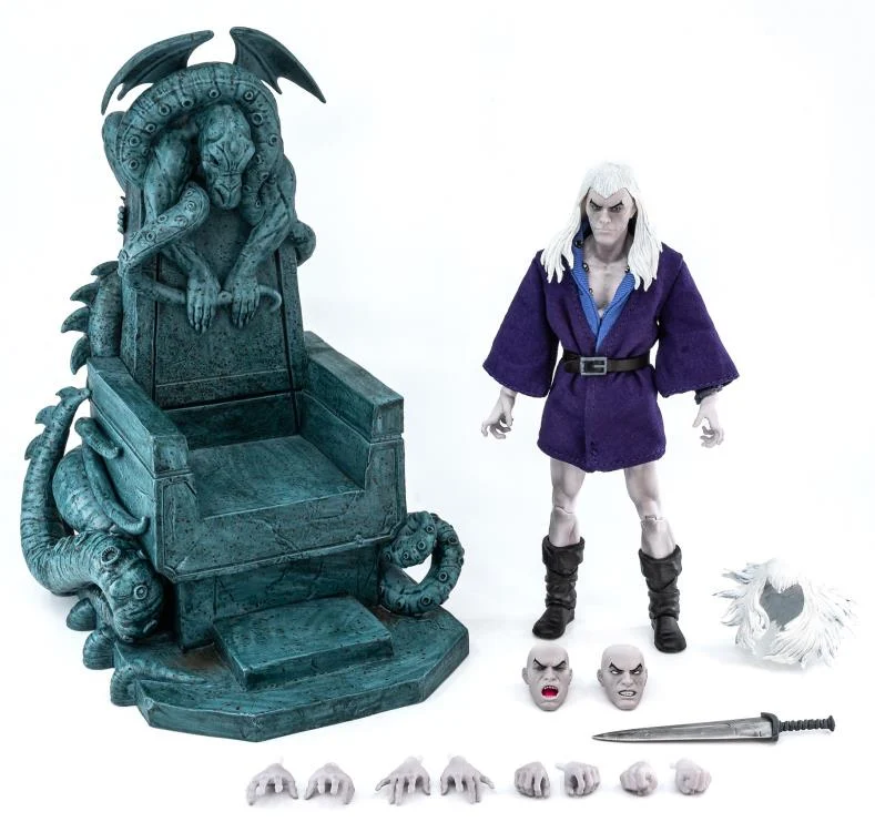 De l’épopée fantastique de Ralph Bakshi et Frank Frazetta de 1983, Fire and Ice, Nekron émerge à l’échelle 1:12, prenant vie avec des détails de sculpture incroyables et une polyvalence totale. L’impitoyable souverain d’Icepeak est livré avec un trône à grande échelle, entièrement sculpté, avec des marches à plusieurs niveaux et un motif de bête sculpté, une pièce d’exposition imposante digne de la forteresse gelée qu’il contrôle.