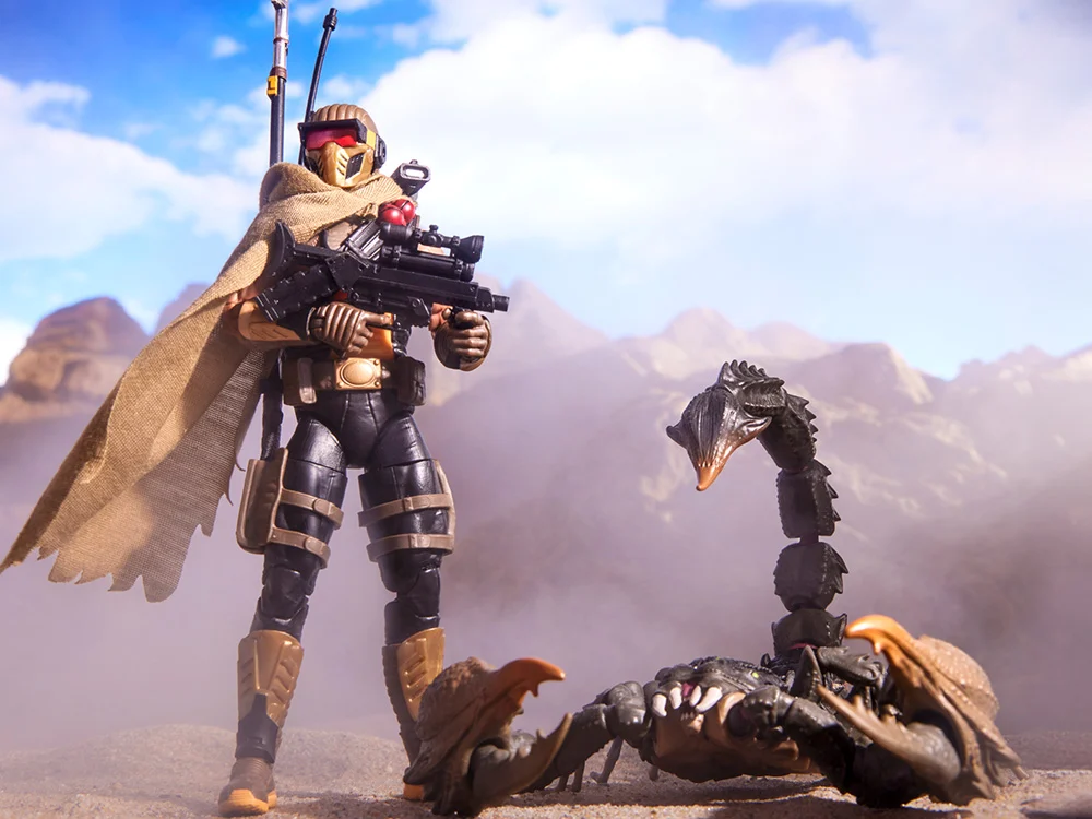 Nouveau dans la gamme G.I. Joe Classified Series, le Cobra Desert Scorpion et le familier SKRP10N-25 sont prêts pour l’aventure, avec de multiples points d’articulation pour une grande pose. Cette figurine Cobra Desert Scorpion contient 12 accessoires inspirés du personnage, dont une plaque frontale interchangeable pour plusieurs looks, un sac à dos avec cordon de connexion, 2 couteaux, un lance-grappin avec crochet amovible et une ligne attachée, un aiguillon à scorpion, 2 griffes et des accessoires d’arme ; Plus une cape souple et une jupe casque. SKRP10N-25 est un animal de compagnie colossal entièrement articulé avec des pinces massives et un cordier non attaché.