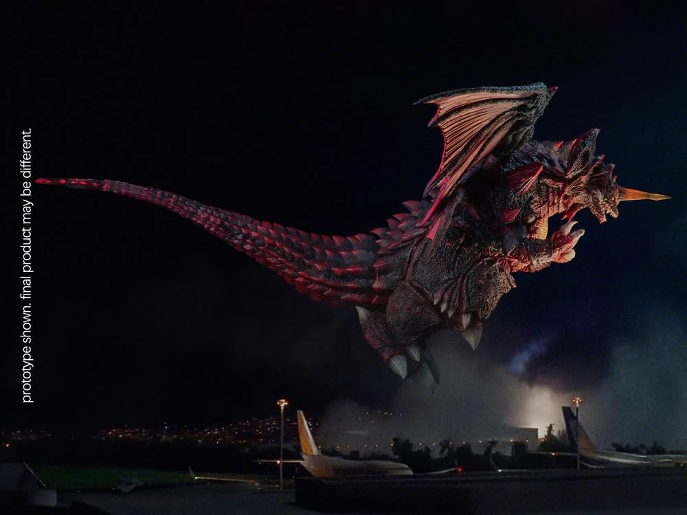 Mesurant environ 20,5 cm, la figure présente des doigts articulés individuellement, une extrémité de queue pouvant s’ouvrir jusqu’à environ 45°, et des genoux articulés à deux articulations, offrant stabilité et portée sur une grande variété de postures, permettant de recréer les mouvements caractéristiques de Destoroyah – approches avancées basses, assauts aériens soudains et pression implacable vers l’avant – capturant ainsi sa confrontation emblématique avec Burning Godzilla.