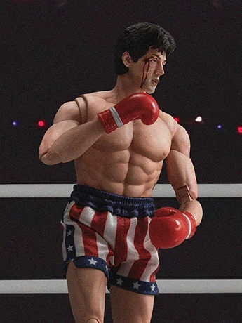 Mesurant environ 16 cm, cette figurine EXQUISITE SUPER Series à l’échelle 1/12 recrée fidèlement l’expression déterminée de Rocky et sa définition musculaire aguerlie, capturant son esprit combatif indéfectible lors des combats. Son célèbre short de boxe étoilé et rayé, ses gants rouges et ses bottes blanches reflètent la fierté et la gloire d’un héros américain. Sous son regard marqué brûle le cœur d’un champion qui incarne la conviction que « ce n’est pas une question de force de frappe — c’est à quel point on peut être touché et continuer d’avancer. »