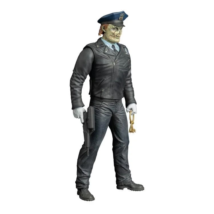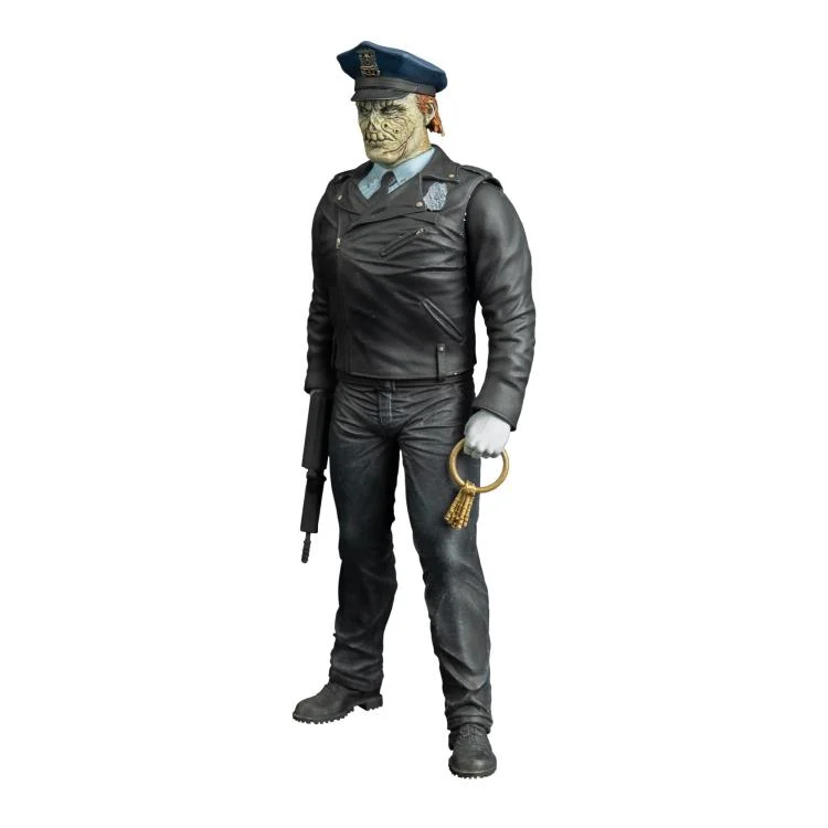 Comprend : Maniac Cop à l’échelle 8″ avec des têtes alternatives, matraque à lame amovible, revolver, pistolet-mitrailleur et clés sur anneau de clés sur un anneau.