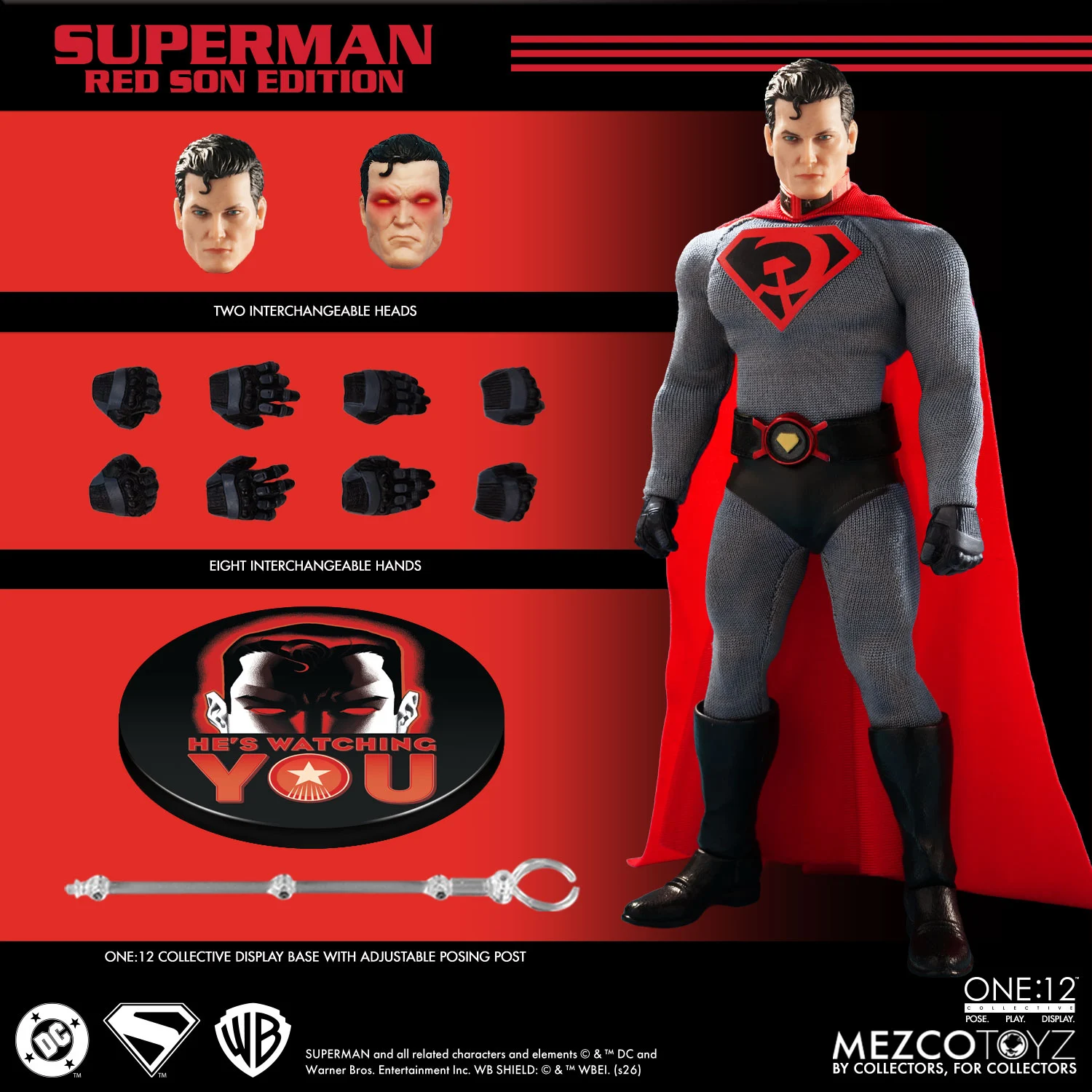Le Superman du Fils Rouge du Collectif One :12 présente une réinterprétation frappante de l’Homme d’Acier, vêtu d’un costume texturé orné de l’inimitable blason en forme de marteau et de faucille. Sa présence imposante est accompagnée d’une cape en tissu sur mesure avec un fil de pose intégré, permettant des spectacles dramatiques et aériens dignes d’un monde sous sa surveillance.