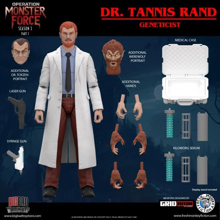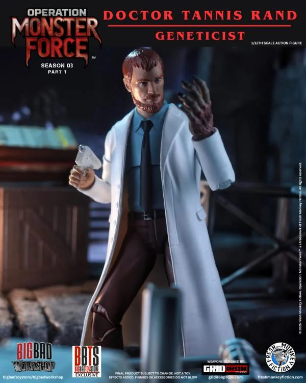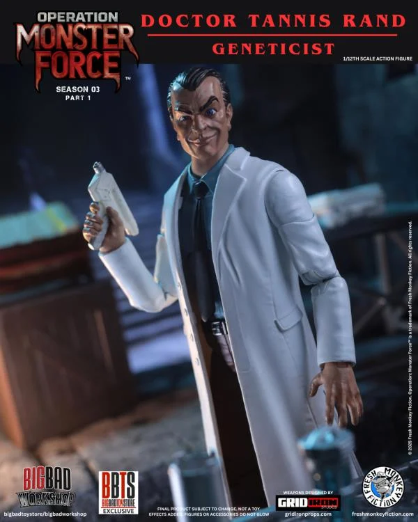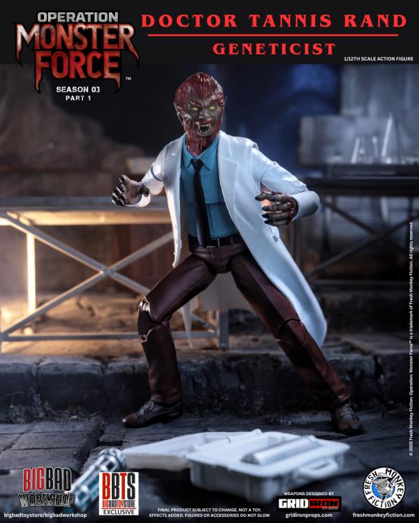 Chaque figurine articulée Operation : Monster Force au 1:12th comprend plus de 20 points d’articulation et comprend des accessoires tels que : des portraits alternatifs, des mains interchangeables, ainsi qu’une base de pierre tombale Operation : Monster Force pour une pose et une exposition faciles.