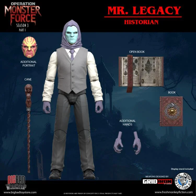 Chaque figurine articulée Operation : Monster Force au 1:12th comprend plus de 20 points d’articulation et comprend des accessoires tels que : des portraits alternatifs, des mains interchangeables, ainsi qu’une base de pierre tombale Operation : Monster Force pour une pose et une exposition faciles.