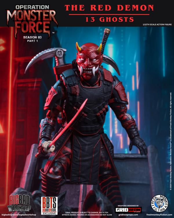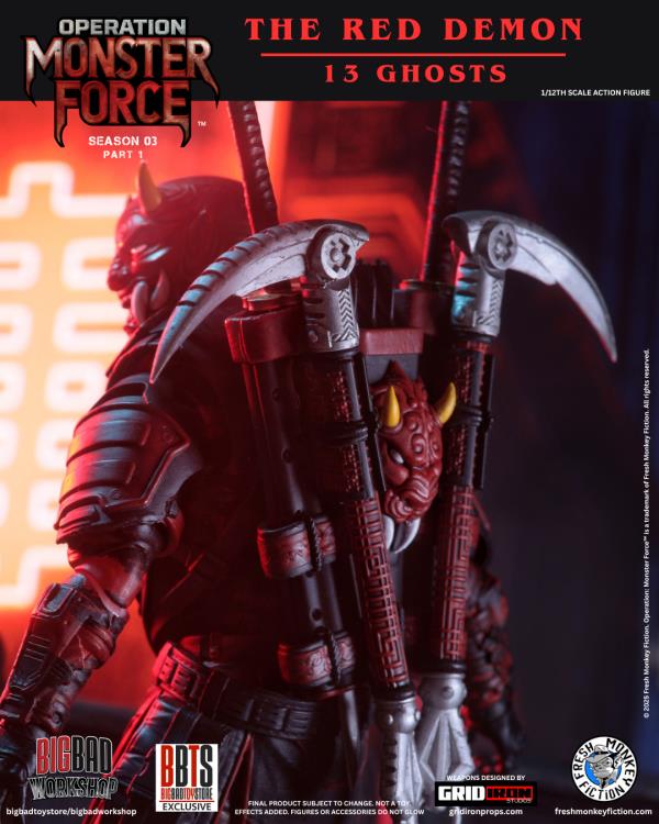 Chaque figurine articulée Operation : Monster Force au 1:12th comprend plus de 20 points d’articulation et comprend des accessoires tels que : des portraits alternatifs, des mains interchangeables, ainsi qu’une base de pierre tombale Operation : Monster Force pour une pose et une exposition faciles.