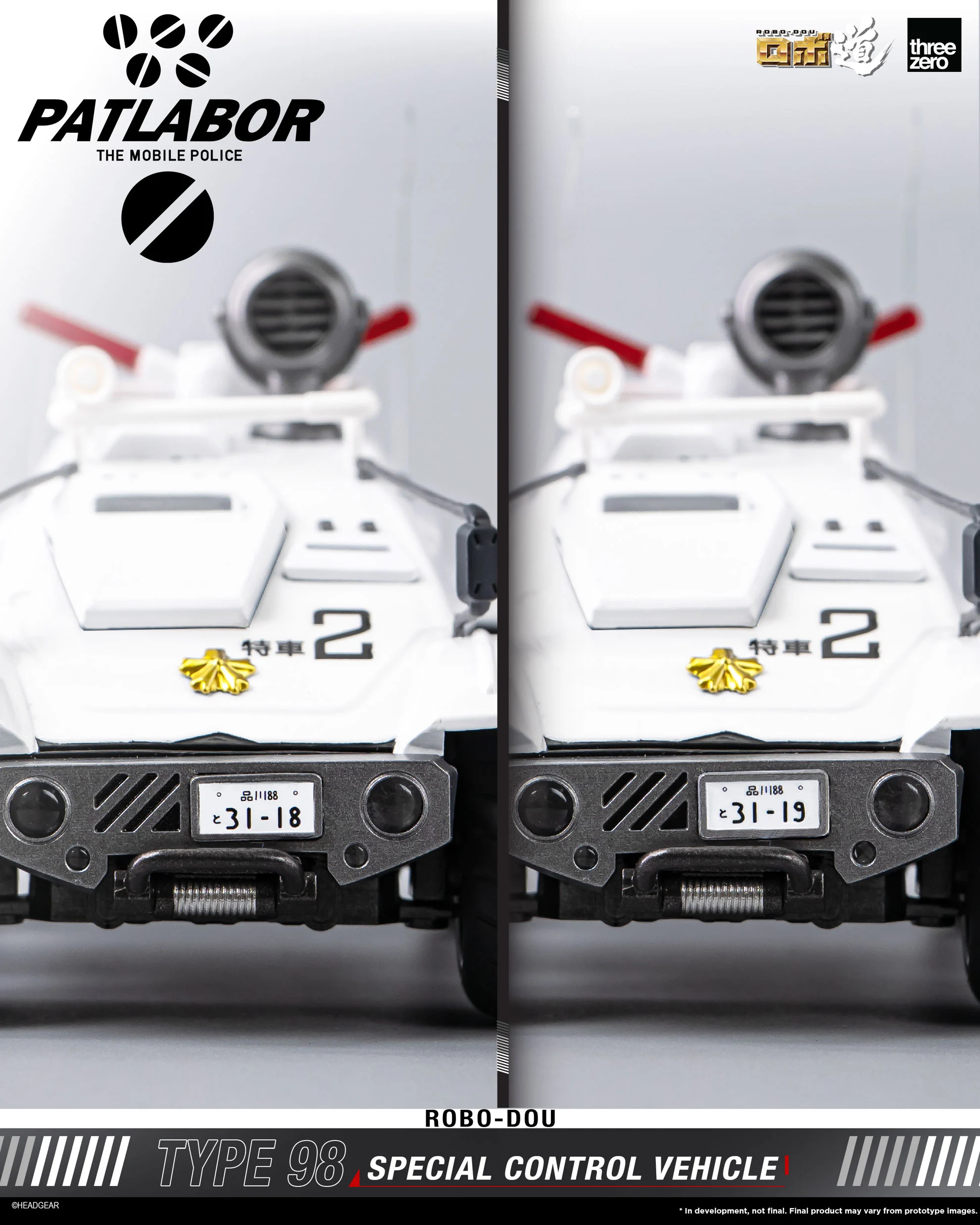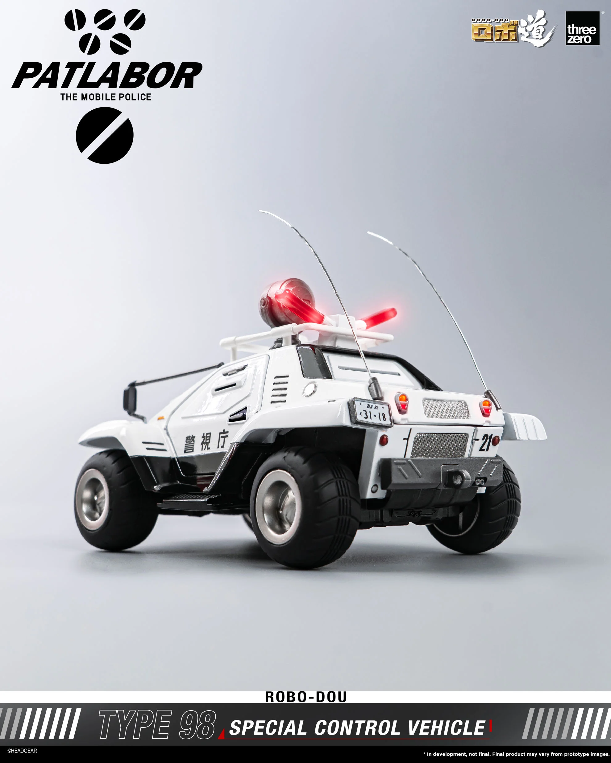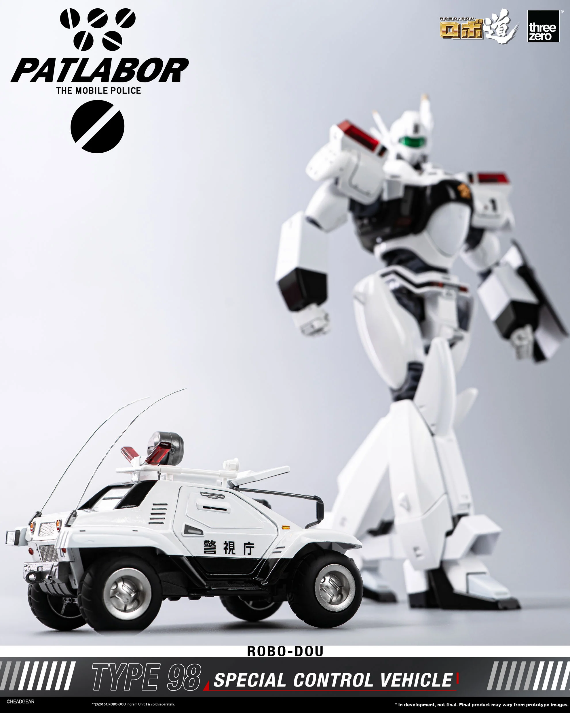 Tiré de la série animée classique Mobile Police Patlabor, threezero présente fièrement le véhicule de contrôle spécial ROBO-DOU Type 98 !
