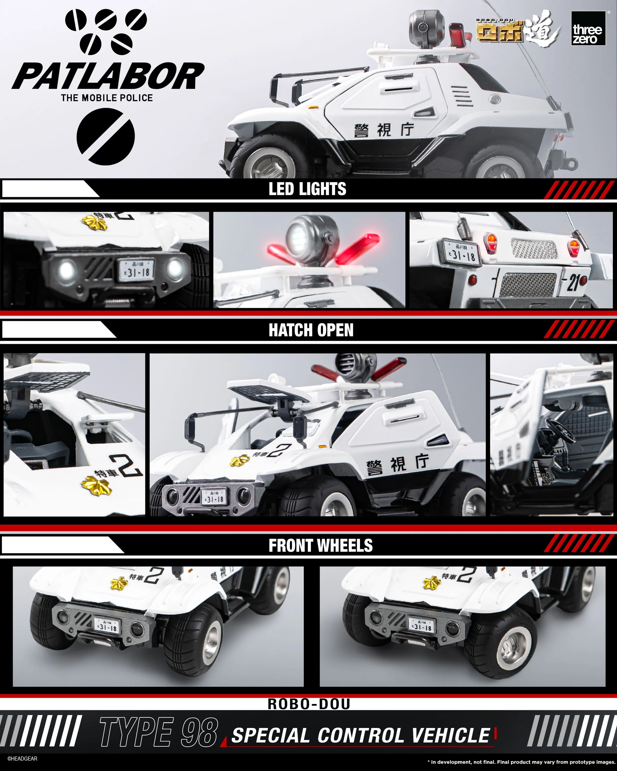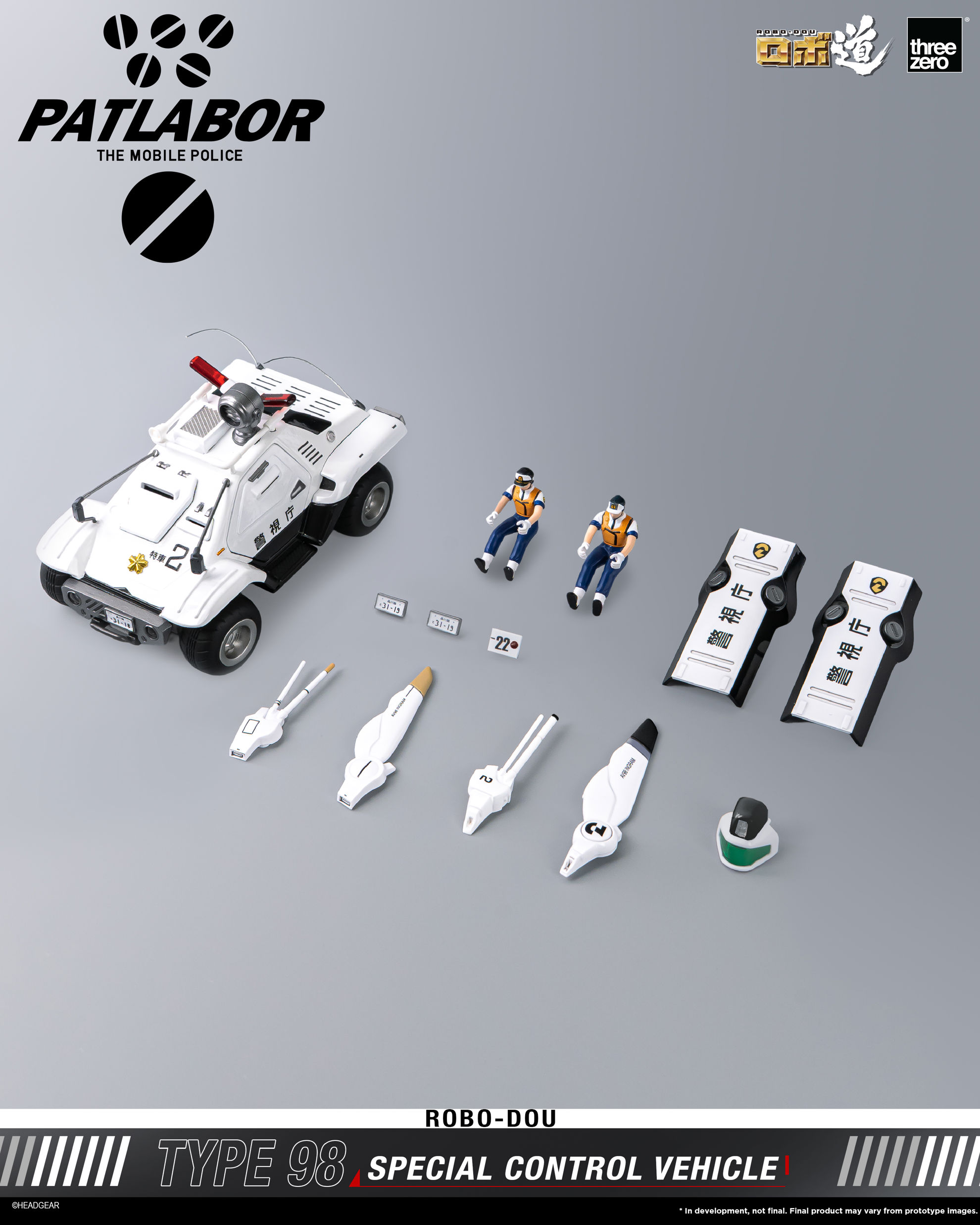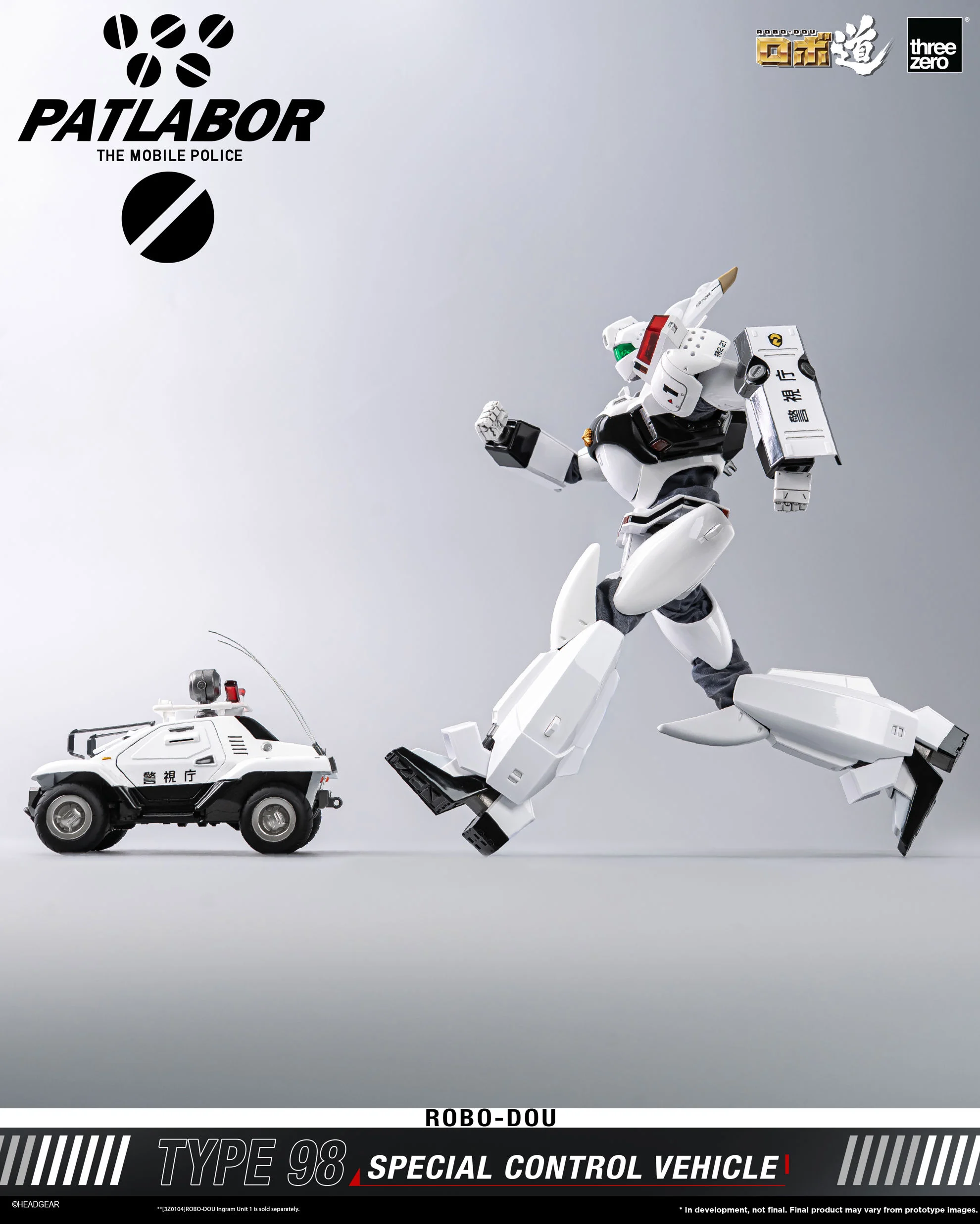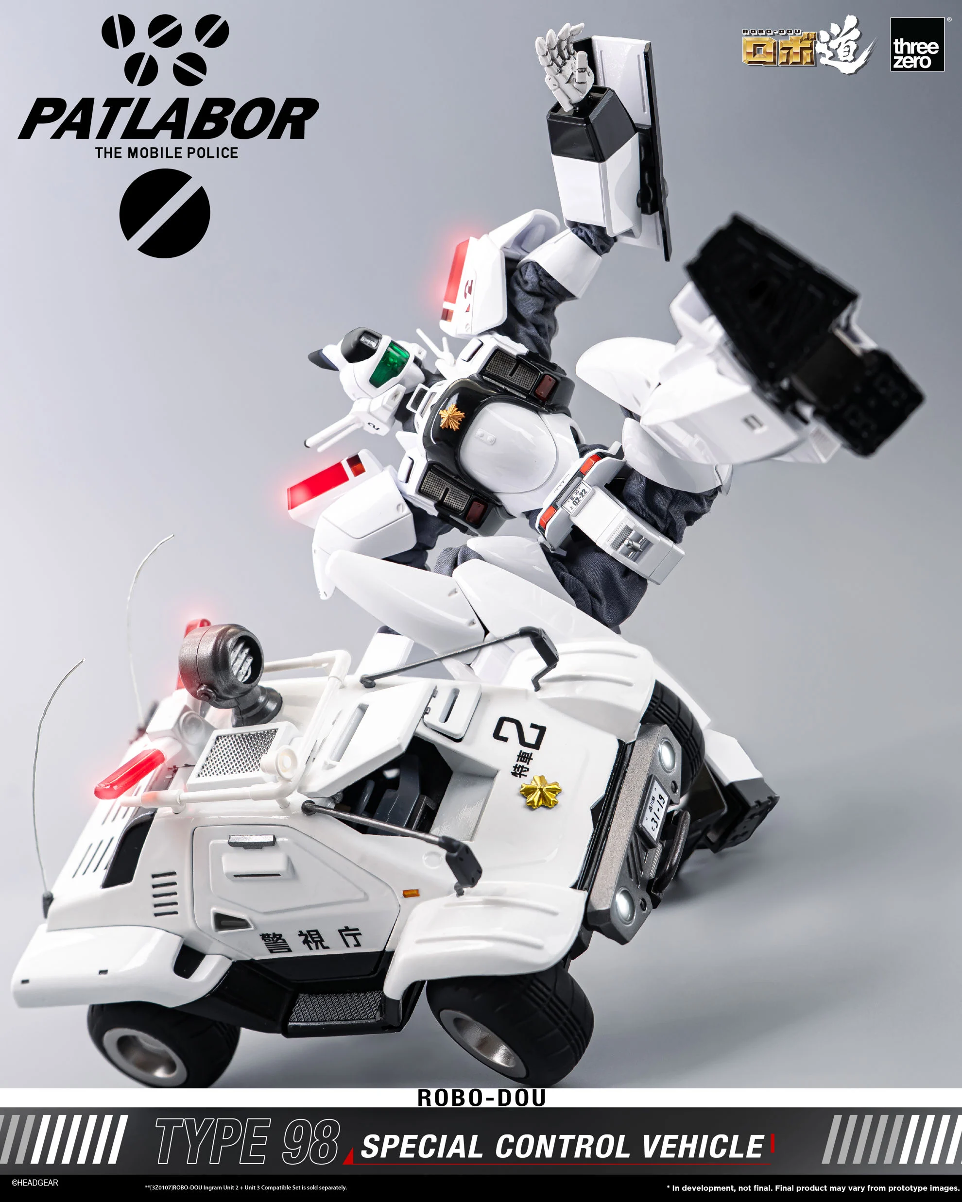 Tiré de la série animée classique Mobile Police Patlabor, threezero présente fièrement le véhicule de contrôle spécial ROBO-DOU Type 98 !
