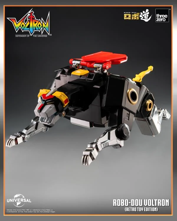 Le Voltron classique est recréé en utilisant l’ingénierie ROBO-DOU pour obtenir une plus large gamme d’articulation et mieux combiner les fonctions que ses contemporains. ROBO-DOU Voltron (Retro Toy Edition) est composé de cinq mecha Lion, et est capable de se diviser en mode Lion, ou de se combiner pour former Voltron. Les cinq mecha Lion sont des figurines entièrement articulées, adoptant en partie des pièces en alliage de zinc et en métal pour les articulations mobiles. Combiné, la figurine utilise 124 points d’articulation pour un total de cinq machines, avec un ensemble d’armes en mode Voltron en plus d’un ensemble unique d’armes pour chaque lion.