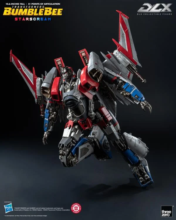 Tiré du film d’action en direct Transformers : Bumblebee, Threezero est fier de présenter le DLX Starscream ! Cette figurine présente les techniques de peinture renommées de threezero pour recréer méticuleusement l’apparence de Starscream dans le film.